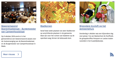 Zoals de titel al zegt worden nieuws berichten gebruikt om actuele informatie te tonen op de website. Ze worden verzameld op één overzichtspagina en enkele items kunnen op de homepage getoond worden. Het nieuws kan ook beschikbaar gesteld worden als XML-overzicht.