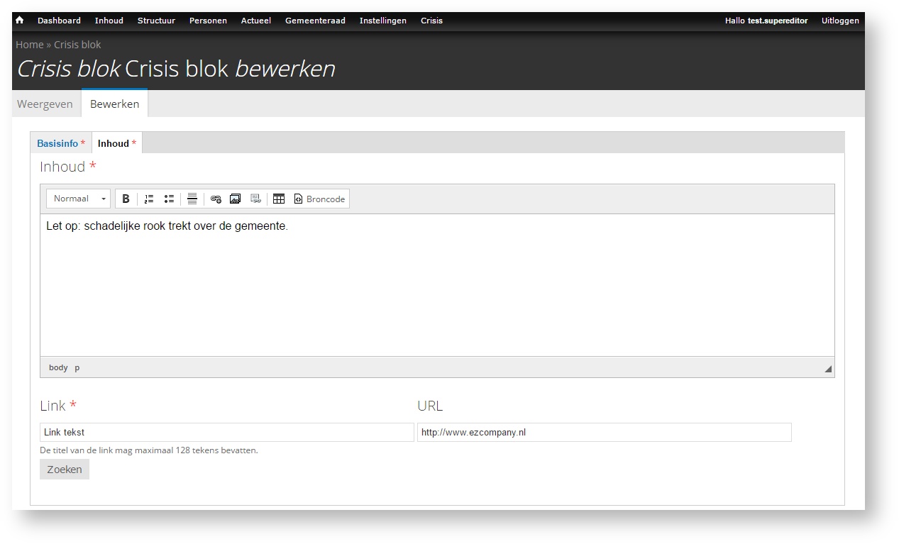 Crisis blok toevoegen (supereditor)