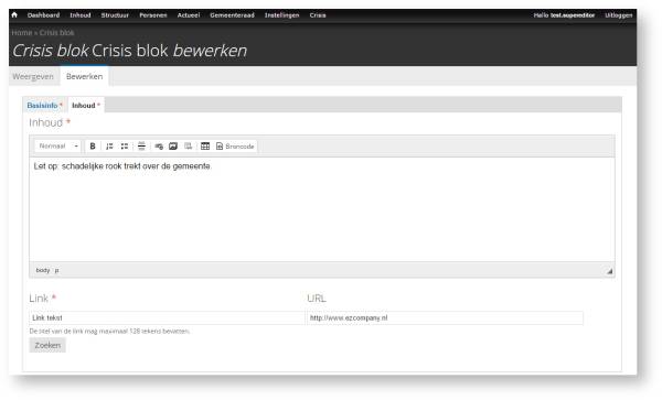 Er kunnen meerdere 'Crisis bloks' worden aangemaakt. Het 'Crisis blok' kan op de volgende manier worden gepubliceerd (slechts één blok kan worden gepubliceerd).