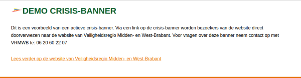 Als een veiligheidsregio de functionaliteit beschikbaar heeft om notificaties te integreren in externe sites kan deze gekoppeld worden zodat bij calamiteiten de banner automatisch op de betreffende (gemeente)site verschijnt als de veiligheidsregio dit activeert.
