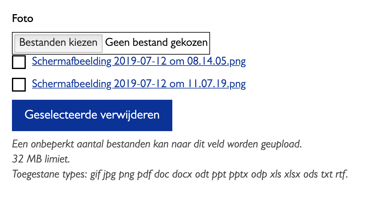 Als burgers een bestand naar de gemeente mogen verzenden, gebruiken we daar een bestandsveld voor.