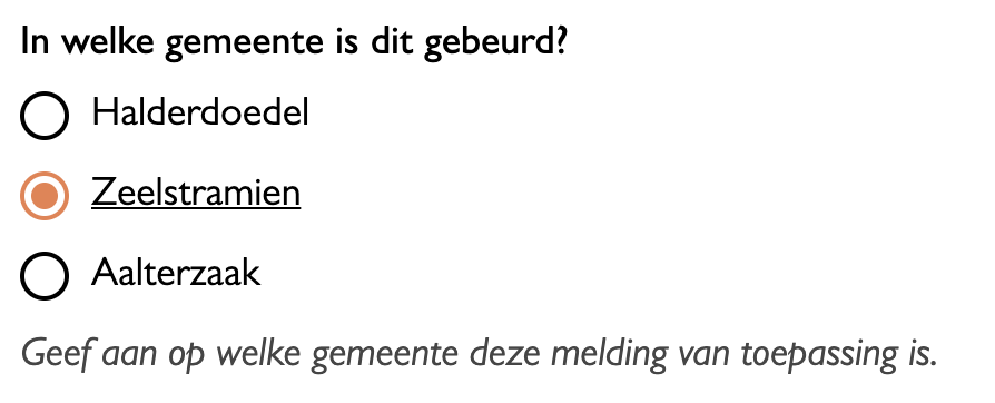 Als een gebruiker één optie mag kiezen, maar wel alle mogelijkheden in één oogopslag moet kunnen zien, kunt u keuzerondjes gebruiken. Dit is gewoonlijk alleen mogelijk en werkbaar als er maar enkele opties mogelijk zijn.