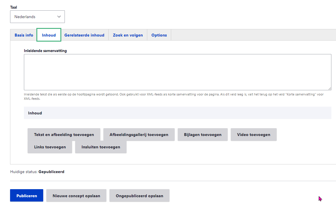 Basisinformatie | Inhoud | Gerelateerde inhoud | Zoeken | Opties