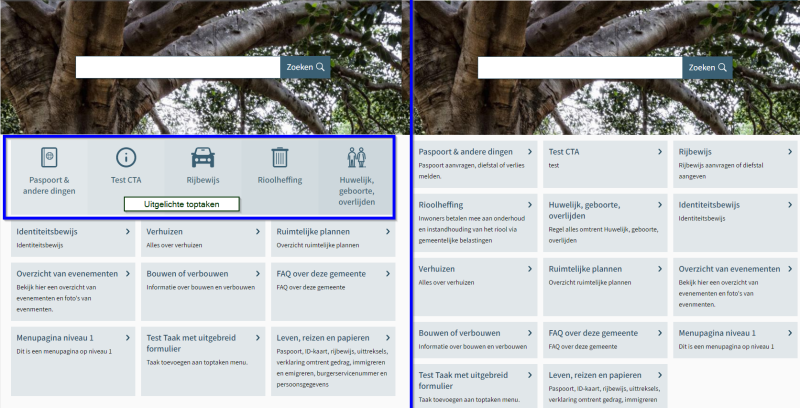 Voorbeeld menu met en zonder uitgelichte toptaken