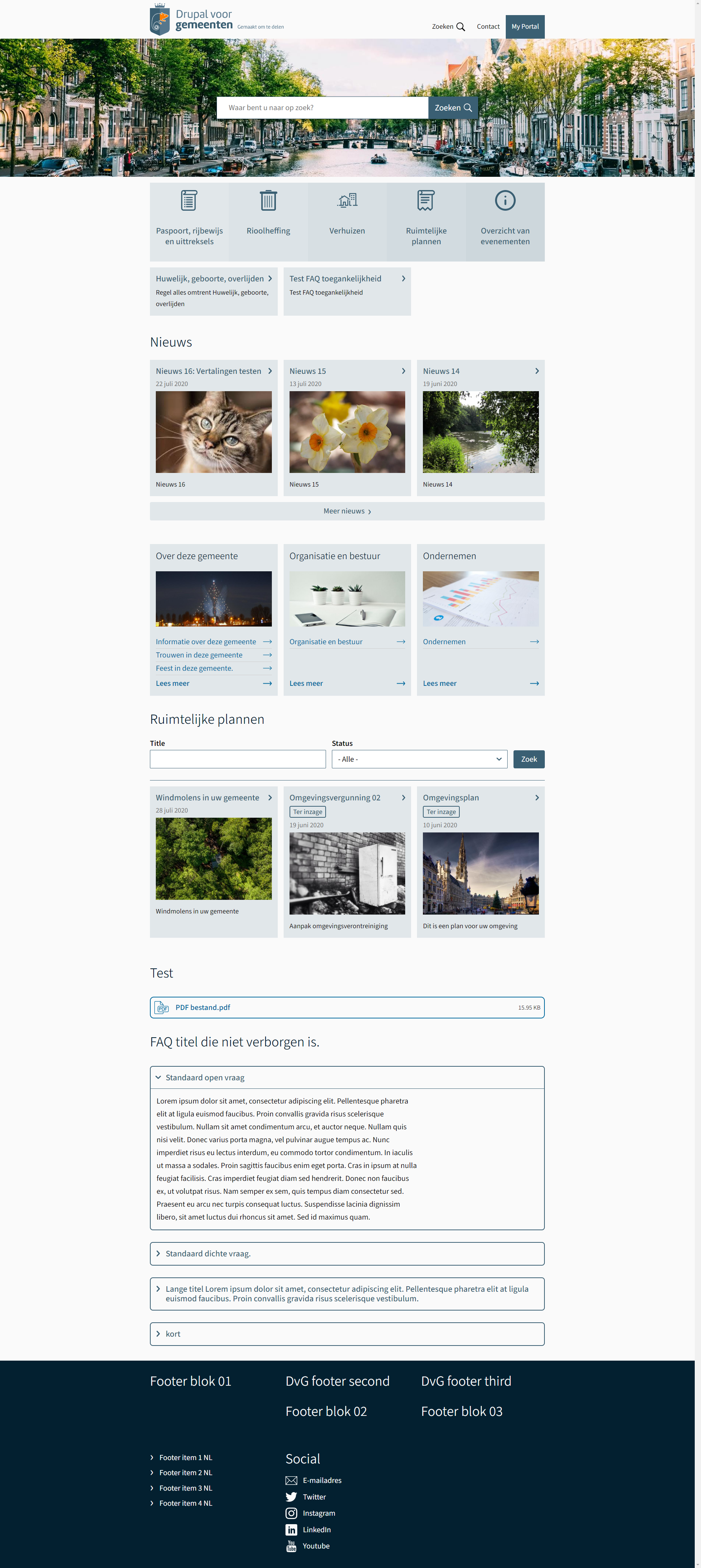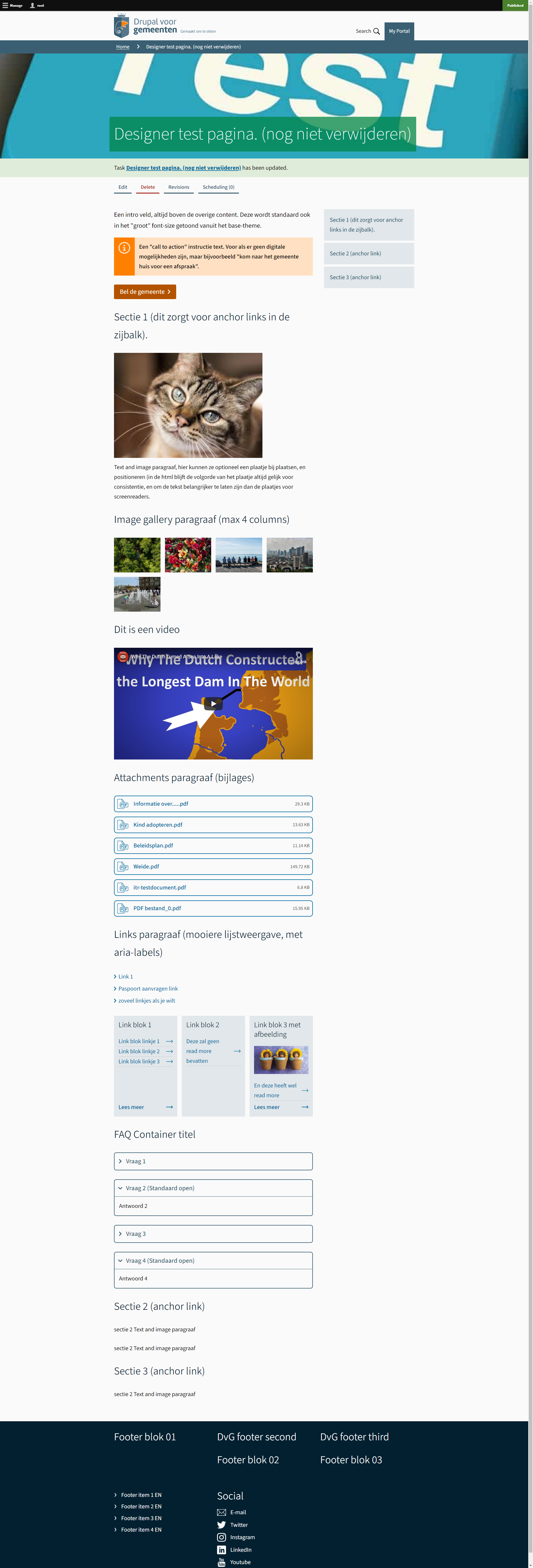De frontpage is van het content-type “pagina”. De enige uitzondering is voorlopig de zoekbalk die we zelf 'hard' plaatsen. Maar bij een update kan de gemeente dit zelf instellen, zodat ze meerdere “landingpages” kunnen instellen.