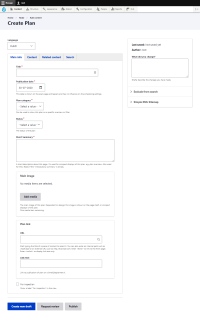 Hier een voorbeeld van een “Plan” pagina, deze bevat de meeste “vaste” velden (in het main tabje). Zaken als titels, datums, etc, bepalen we vanuit het basis/sub theme, en zijn niet door editors zelf in volgorde aan te passen: