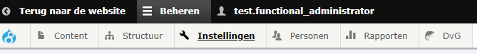 Nadat u bent ingelogd, verschijnt er bovenin de website een zwarte balk met verschillende menu items. Met deze menu items kunt u onder andere de inhoud van de website beheren.