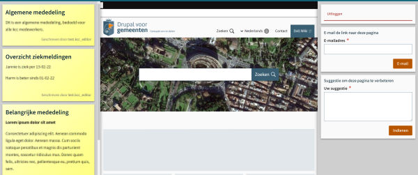 - “Suggestie om de pagina te verbeteren”, dit is een meer interne functionaliteit, waarbij in een tekstvlak een suggestie voor de pagina kan worden ingevoerd, die vervolgens naar een intern emailadres gestuurd wordt zodat dit verwerkt kan worden.